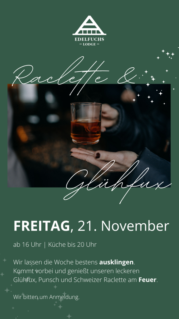 Ihr wollt einfach ganz entspannt ins Wochen­ende starten? Dann kommt vorbei zu unserem Raclette und Glühfux Hock am 21. November. Und was gibt es Passen­deres dazu als ein Original Schweizer Raclette Käsebrot?